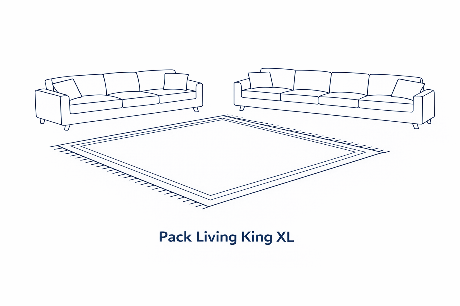 Incluye la protección profesional de un sofá de 3 cuerpos, un sofá de 4 cuerpos y una alfombra grande hasta 15m2, ayudando a prevenir manchas y prolongar la vida útil de tus textiles.